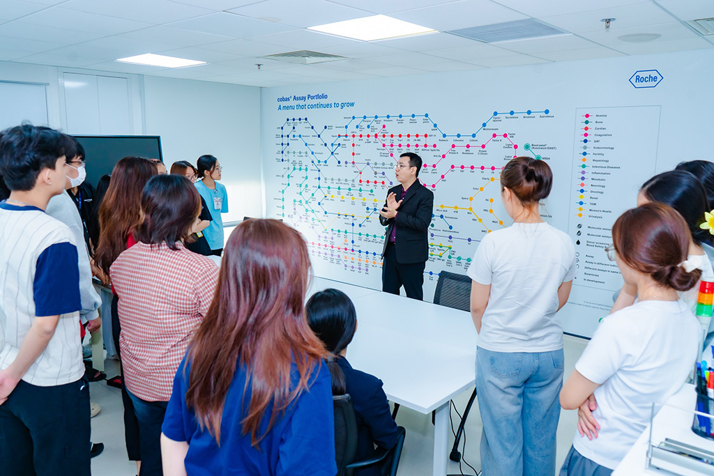 Không chờ đến giai đoạn thực tập tốt nghiệp, sinh viên ngành Xét nghiệm Y học Trường Đại học Quốc tế Hồng Bàng (HIU) đã được “va chạm” môi trường nghề nghiệp thực tế ngay từ những năm đầu thông qua các chuyến kiến tập tại doanh nghiệp công nghệ sinh học hàng đầu. Mới đây, 140 sinh viên của Khoa đã tham gia chương trình kiến tập kéo dài ba ngày tại Trung tâm Huấn luyện Chẩn đoán Kiểu mẫu (Centre of Excellence) của Tập đoàn Roche, Thụy Sĩ, đơn vị tiên phong trong lĩnh vực công nghệ chẩn đoán y khoa.