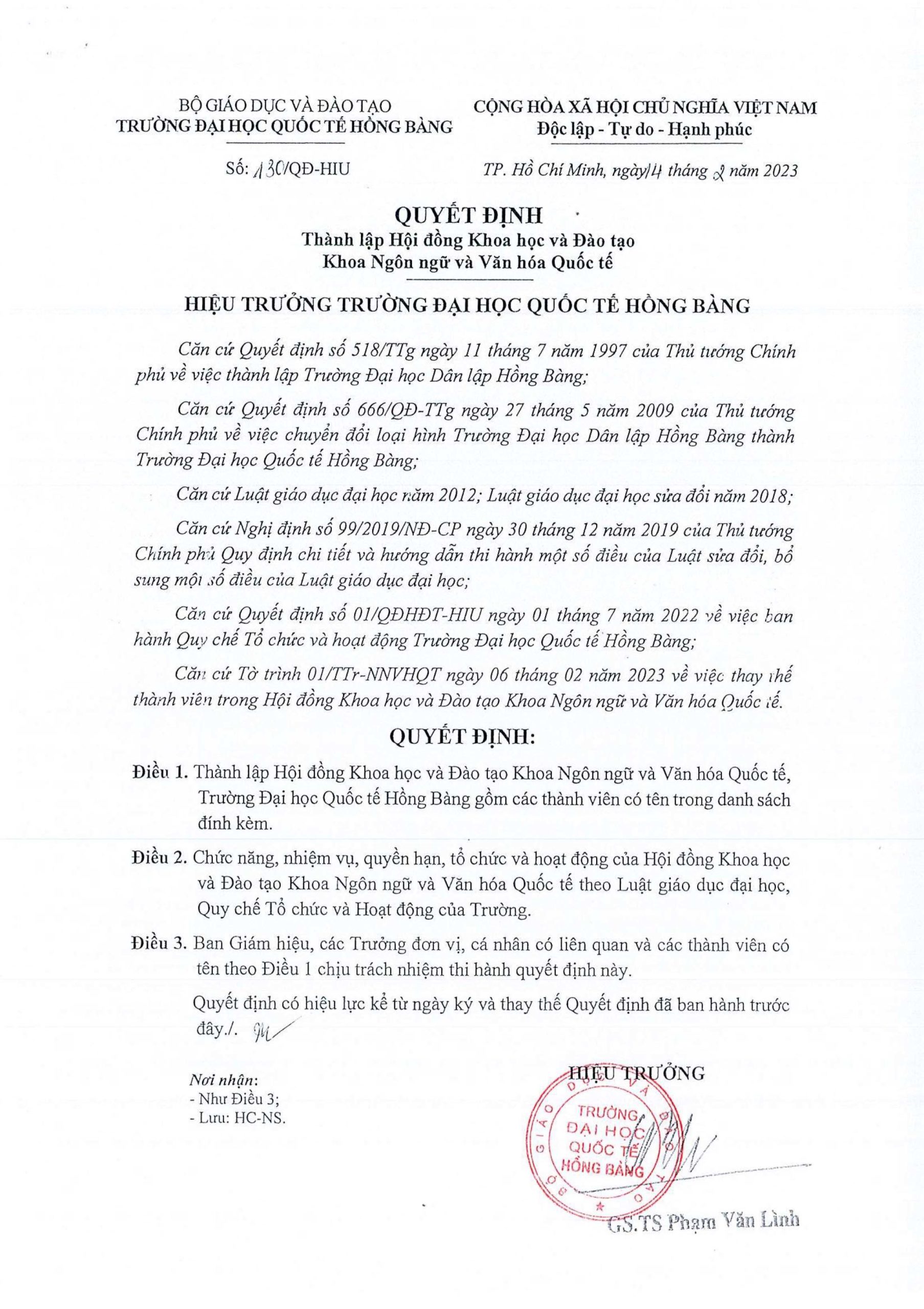 – Trưởng Khoa Ngôn ngữ & Văn hóa Quốc tế