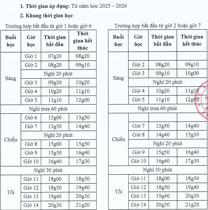 THÔNG BÁO – Về việc điều chỉnh khung thời gian học áp dụng từ năm học 2025 – 2026
