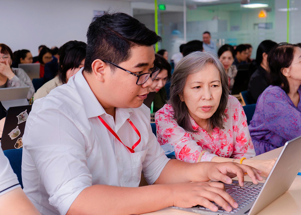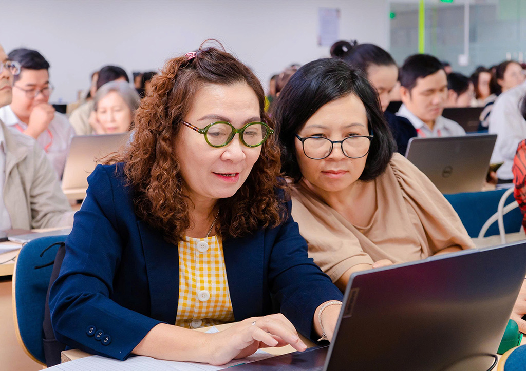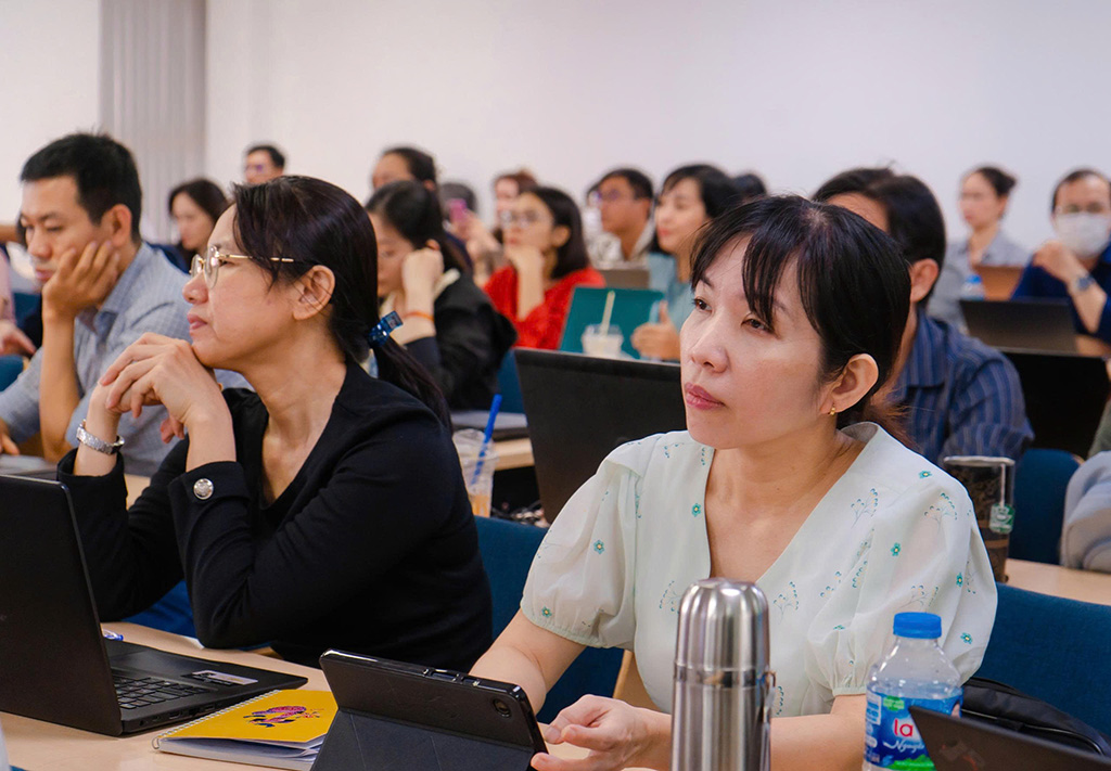 Bên cạnh kỹ năng ứng dụng, chương trình còn chú trọng bồi dưỡng tư duy phù hợp khi sử dụng AI, đồng thời nhấn mạnh các nguyên tắc đạo đức, trách nhiệm và an toàn trong giáo dục. Những vấn đề thiết thực như quyền riêng tư, bảo mật dữ liệu và tính liêm chính trong nghiên cứu khoa học đã được trao đổi sôi nổi. Chuyên gia Lê Quang lưu ý rằng AI chỉ là công cụ hỗ trợ, còn người dùng mới là chủ thể quyết định. Do đó, để khai thác hiệu quả, mỗi người cũng cần trang bị kiến thức và tư duy phản biện, luôn biết kiểm chứng, xác minh trước khi sử dụng sản phẩm do AI tạo ra.