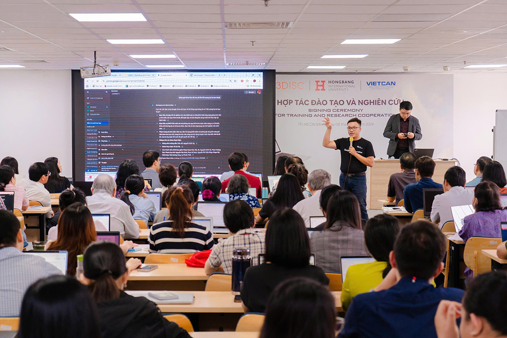 Trong hai ngày 20 và 21/8, hơn 300 cán bộ, giảng viên Trường Đại học Quốc tế Hồng Bàng (HIU) đã tham gia lớp tập huấn chuyên sâu về Trí tuệ nhân tạo (AI), do HIU phối hợp cùng AI Education, đối tác chính thức của Google tại Việt Nam tổ chức. Với chủ đề “Ứng dụng AI trong công tác chuyên môn và quản lý”, chương trình được xem là hoạt động chiến lược trong lộ trình chuyển đổi số, góp phần nâng cao năng lực cho đội ngũ cán bộ, giảng viên của nhà trường.