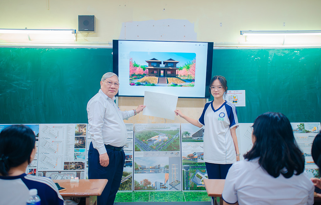 Ở nhóm ngành thiết kế đồ họa và kiến trúc, học sinh được hướng dẫn ký họa, vẽ chibi, làm phim stop-motion và quan sát cách công nghệ, trong đó có AI, hỗ trợ quá trình phác thảo ý tưởng. Các hoạt động này cho thấy ý tưởng sáng tạo có thể được phát triển thành sản phẩm trực quan, từ đồ họa đến mô hình kiến trúc.