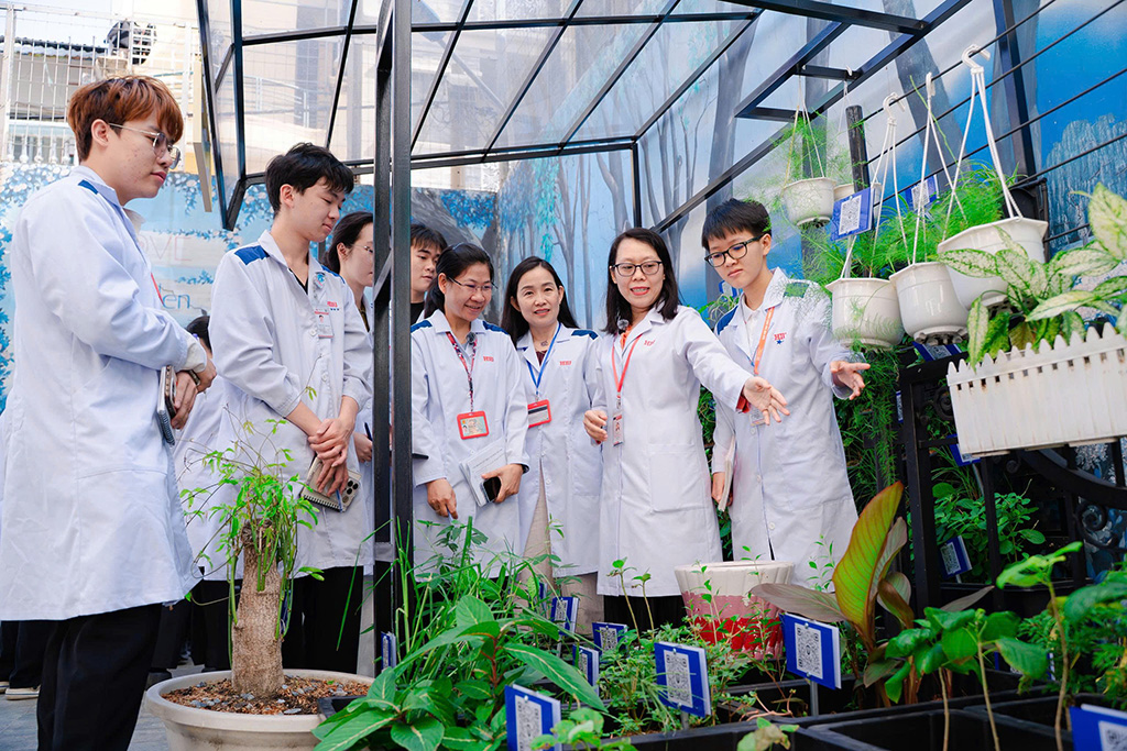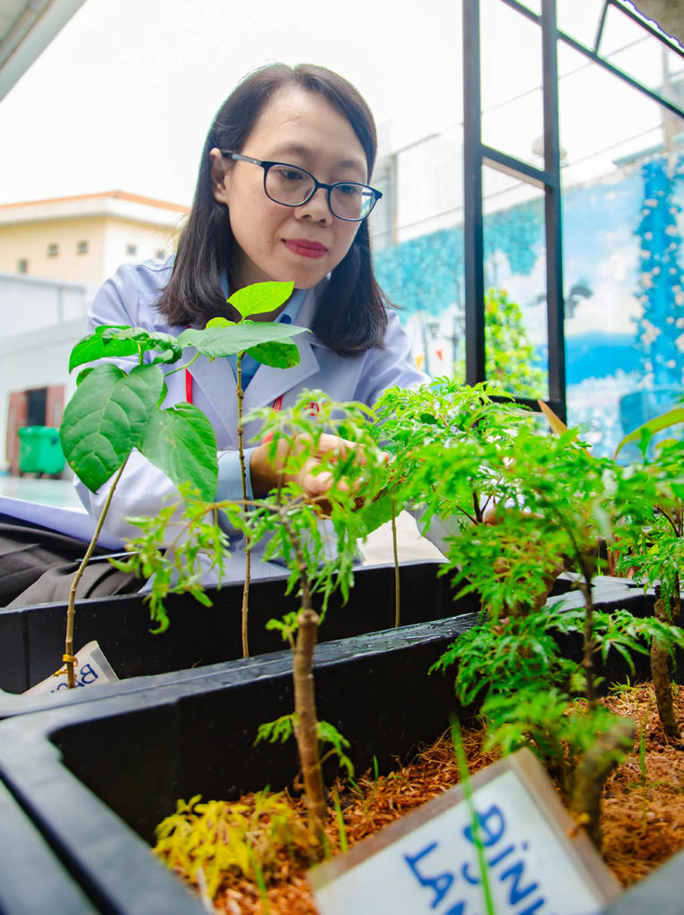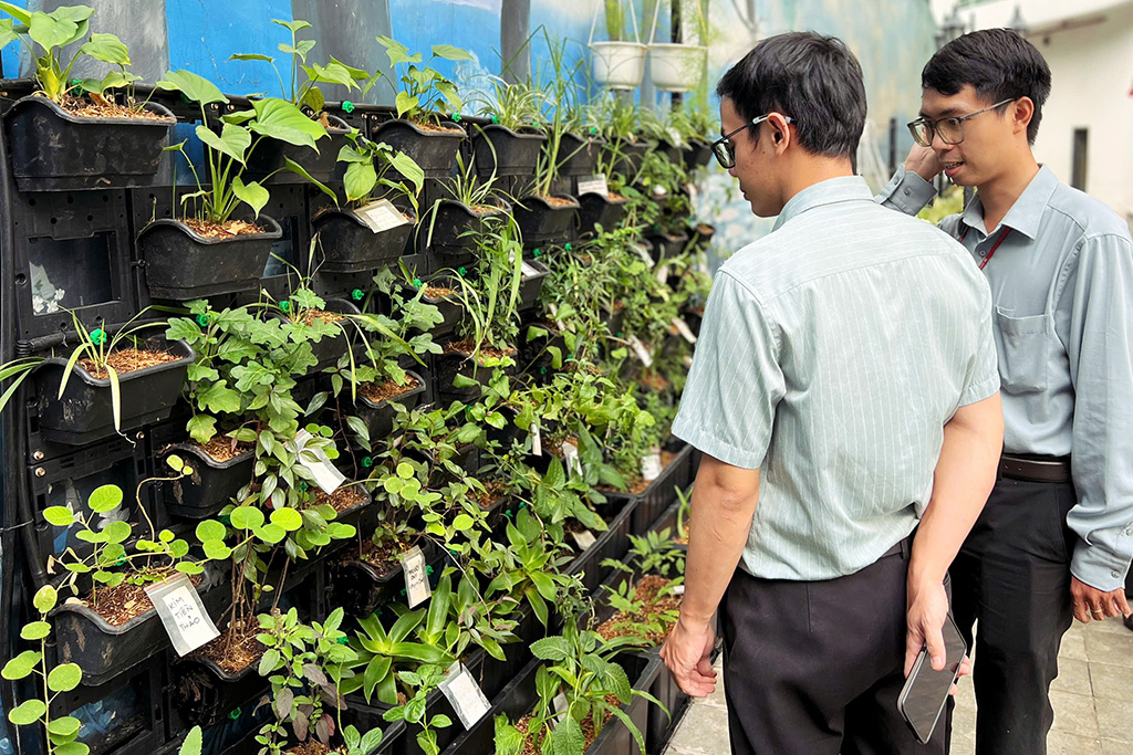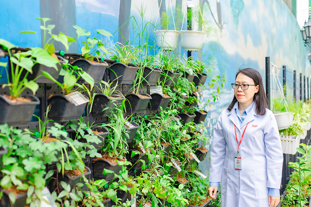 Ý nghĩ đó không đến một cách ồn ào, nhưng ở lại đủ lâu để trở thành một định hướng. Đến năm 2023, khi bắt đầu giảng dạy, cô nghĩ đến việc tạo ra một không gian mà ở đó, sinh viên có thể tiếp cận cây thuốc theo cách trực tiếp nhất, không qua hình ảnh hay mẫu khô, mà là những cây thật, đang sống và thay đổi từng ngày.