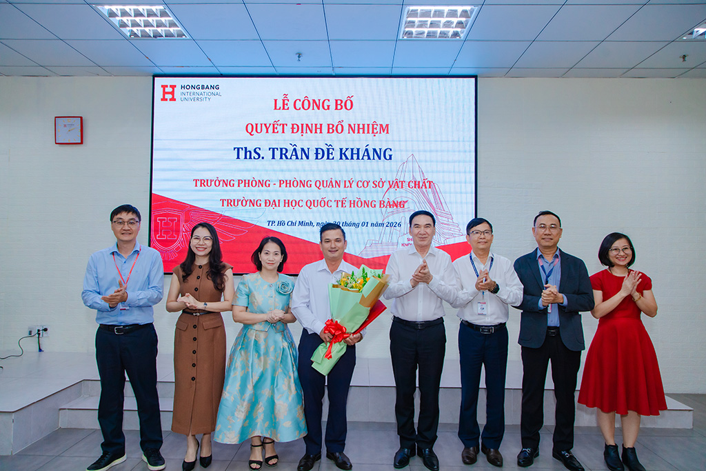 Ngày 30/1/2026, Trường Đại học Quốc tế Hồng Bàng (HIU) tổ chức Lễ công bố quyết định bổ nhiệm Phó Giáo sư, Tiến sĩ giữ các vị trí lãnh đạo tại các Khoa, Phòng chức năng của Nhà trường. Hoạt động nhằm kiện toàn bộ máy tổ chức, đồng thời tăng cường năng lực học thuật và quản lý trong các lĩnh vực đào tạo trọng điểm, đáp ứng yêu cầu phát triển trong giai đoạn mới.